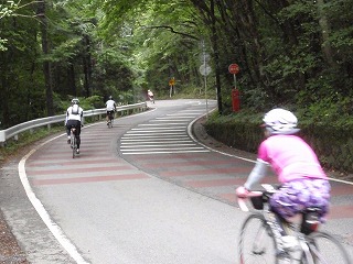 河口湖から西湖に向かう峠はこのコース最大の上り坂でした。