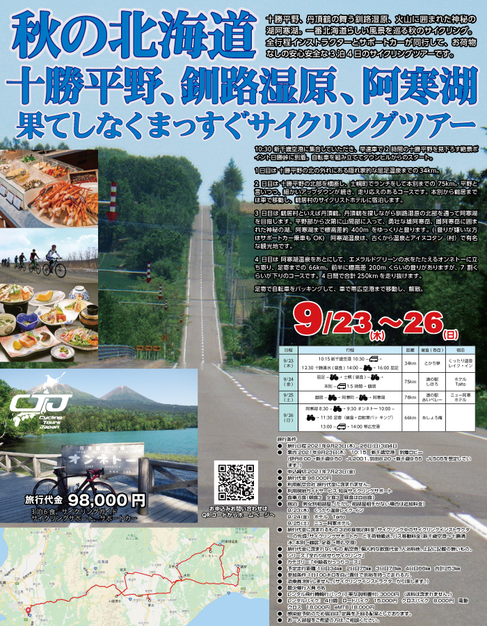 秋の北海道、十勝平野、釧路湿原、阿寒湖サイクリングツアー